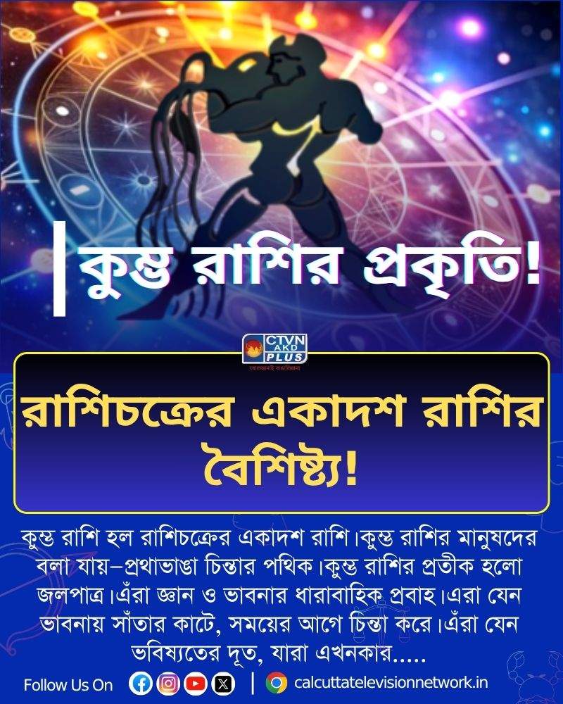 কুম্ভ রাশি হল রাশিচক্রের একাদশ রাশি। কুম্ভ রাশির মানুষদের বলা যায়। এক কথায়, প্রথাভাঙা চিন্তার পথিক। কুম্ভ রাশির প্রতীক হলো জলপাত্র। এঁরা জ্ঞান ও ভাবনার ধারাবাহিক প্রবাহ। এরা যেন ভাবনায় সাঁতার কাটে, সময়ের আগে চিন্তা করে। এঁরা যেন ভবিষ্যতের দূত, যারা এখনকার জগৎকে বদলে দিতে চায়। এই রাশির চরিত্রগত বৈশিষ্ট্য বলতে এঁরা খুব বুদ্ধিদীপ্ত ও উদ্ভাবক প্রকৃতির হয়। কুম্ভরা চিন্তায় অন্যদের চেয়ে কয়েক কদম এগিয়ে থাকে। নতুন নতুন ভাবনা, আবিষ্কার বা সমাজে পরিবর্তনের জন্য ওরা সদা প্রস্তুত। স্বাধীনচেতা হয়। নিজের মতো করে চলতে ভালোবাসে। অন্যদের নিয়মে বাঁধা পড়ে না। এঁরা খুব সামাজিক ও মানবিক হয়। মানুষ, সমাজ এবং পরিবেশকে নিয়ে চিন্তায় থাকে। এই রাশির জাতকেরা খুব বন্ধুত্বপ্রিয় কিন্তু অন্তর্মুখীও হয়। অনেক বন্ধুবান্ধব থাকলেও মনের কথা খুব সহজে বলে না। গভীর ভাবনার জগতে ডুবে থাকে।এঁরা অভিজ্ঞান ও ভবিষ্যতচিন্তায় পারদর্শী। অর্থাৎ, প্রযুক্তি-বিজ্ঞান বা সামাজিক পরিবর্তনের বিষয় ওদের আকর্ষণ করে।