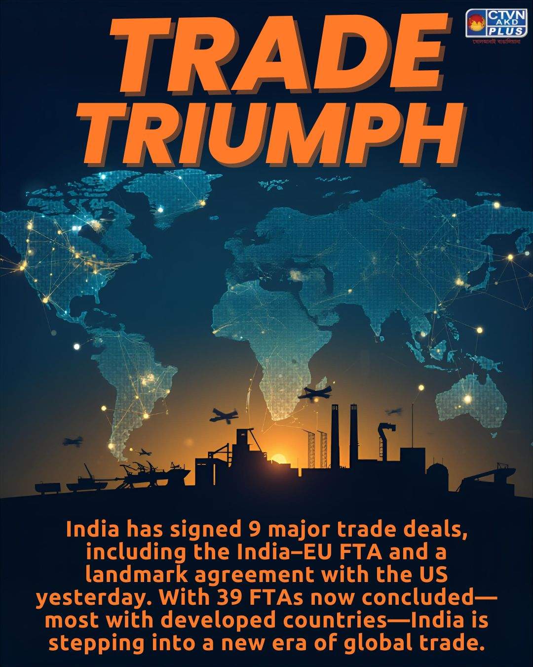 India today stands at a historic juncture in its economic journey, marked by unprecedented enthusiasm over a series of landmark trade agreements under the leadership of Prime Minister Narendra Modi. In just the past few days, nine major trade deals have been finalized, including the much-anticipated India–EU Free Trade Agreement and a significant pact with the United States. These developments, coupled with the announcement of tariff reductions, signal a bold new era for India’s global trade engagement.