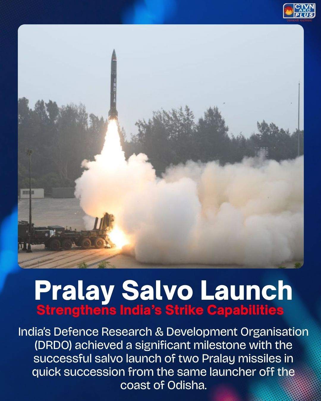 India’s Defence Research & Development Organisation (DRDO) achieved a significant milestone with the successful salvo launch of two Pralay missiles in quick succession from the same launcher off the coast of Odisha. Conducted as part of user evaluation trials, the test demonstrated the missile’s reliability and readiness for induction into the armed forces. Defence Minister Rajnath Singh commended DRDO, the Indian Air Force, the Indian Army, and industry partners for their role in the achievement, noting that the successful salvo launch established confidence in the system’s operational effectiveness.