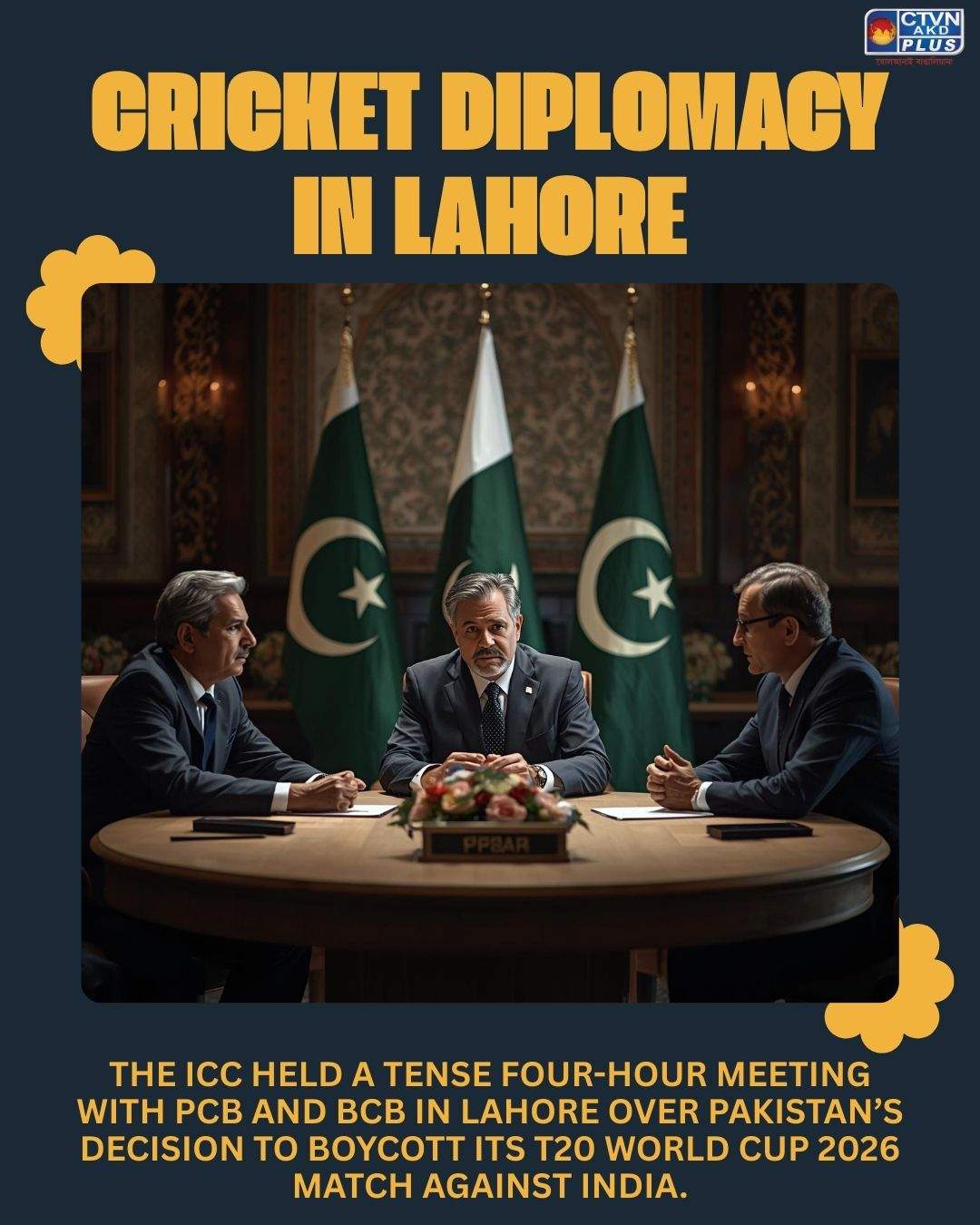 The International Cricket Council (ICC) convened a closed-door meeting with the Pakistan Cricket Board (PCB) and the Bangladesh Cricket Board (BCB) at Lahore’s Gaddafi Stadium on Sunday, amid escalating tensions over Pakistan’s decision to boycott its ICC Men’s T20 World Cup 2026 clash against India. Scheduled for February 15 in Colombo, the fixture is one of the tournament’s marquee matches, yet Pakistan’s withdrawal has triggered serious governance and commercial concerns.