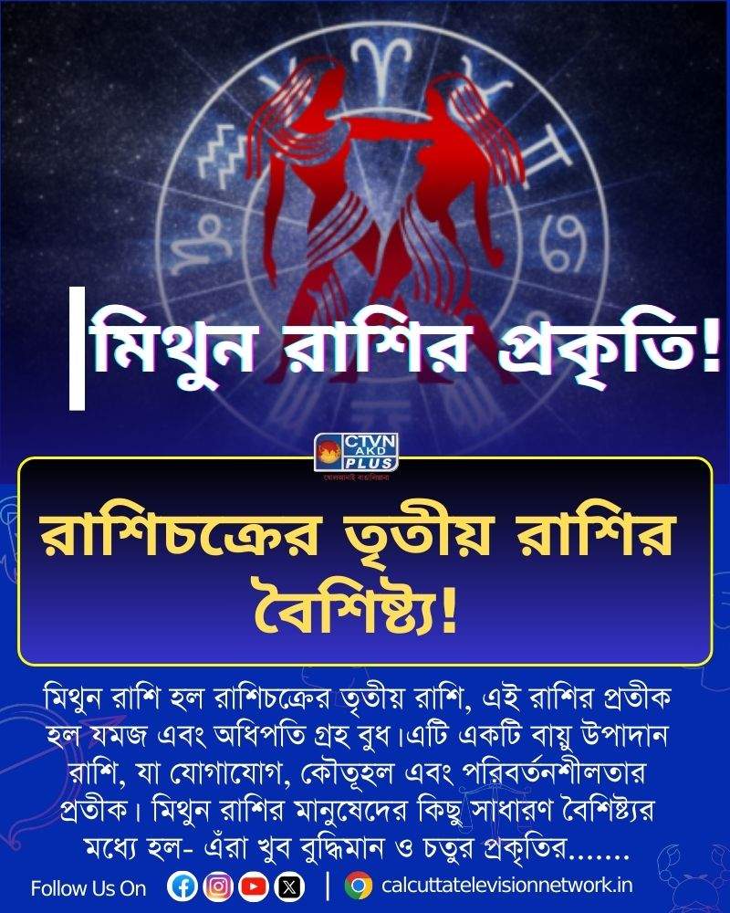 মিথুন রাশি হল রাশিচক্রের তৃতীয় রাশি, এই রাশির প্রতীক হল যমজ এবং অধিপতি গ্রহ বুধ। এটি একটি বায়ু উপাদান রাশি, যা যোগাযোগ, কৌতূহল এবং পরিবর্তনশীলতার প্রতীক। আচ্ছা, কেউ কি জানেন এই রাশির মানুষেরা কেমন প্রকৃতির হন? চলুন তাহলে জেনে নেওয়া যাক, মিথুন রাশির মানুষেদের কিছু সাধারণ বৈশিষ্ট্যর মধ্যে হল- এঁরা খুব বুদ্ধিমান ও চতুর প্রকৃতির মানুষ হন। এঁরা আসলে দ্রুত চিন্তা করতে পারে, যুক্তিবাদী এবং বিশ্লেষণক্ষম হন। এই রাশির জাতকেরা খুব কৌতূহলী হন। অর্থাৎ, নতুন বিষয় শেখার আগ্রহ প্রবল। সবকিছুতেই “কেন?” প্রশ্ন করতাই থাকে। এঁরা প্রায় সব বিষয়েই যোগাযোগে দক্ষ হন। কথা বলায় পারদর্শী, লেখালেখি বা বিতর্কে দারুণ হয়। এঁরা বহুমুখী ও অভিযোজিত প্রকৃতির হন। অর্থাৎ, একাধিক কাজ একসাথে করতে পারে, পরিবর্তনের সঙ্গে মানিয়ে নিতে পারে। এই রাশির মানুষেরা সৃজনশীল ও প্রাণবন্ত হন।