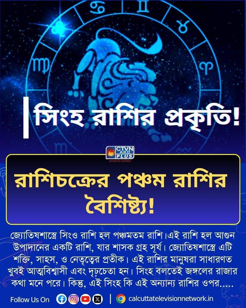 জ্যোতিষশাস্ত্রে সিংও রাশি হল পঞ্চমতম রাশি। এই রাশি হল আগুন উপাদানের একটি রাশি, যার শাসক গ্রহ সূর্য। জ্যোতিষশাস্ত্রে এটি শক্তি, সাহস, ও নেতৃত্বের প্রতীক। এই রাশির মানুষরা সাধারণত খুবই আত্মবিশ্বাসী এবং দৃঢ়চেতা হন। সিংহ বলতেই জঙ্গলের রাজার কথা মনে পরে। কিন্তু, এই সিংহ কি এই অন্যান্য রাশির ওপর তেমন কোনো প্রভাব বিস্তার করতে পারে? চলুন তাহলে জেনে নেওয়া যাক, এই রাশির মানুষেরা আদতে কেমন হয়? এই রাশির মানুষেরা খুব আত্মবিশ্বাসী হন অর্থাৎ নিজেদের প্রতি প্রবল বিশ্বাস থাকায় তাঁরা নতুন কিছু করতে পিছিয়ে আসেন না। এই রাশির জাতক-জাতিকারা অভিনয়, সঙ্গীত, শিল্প সব কিছুতেই তাঁদের ঝোঁক দেখা যায়। এরা খুব আবেগপ্রবণ হয়। এঁরা ভালোবাসা, রাগ, উচ্ছ্বাস—সব আবেগই গভীরভাবে অনুভব করতে পারেন। এঁরা স্নেহশীল প্রকৃতির হয়। সিংহ রাশির ব্যক্তিরা স্বাভাবিকভাবে নেতৃত্বদেন করতে সক্ষম হন।
